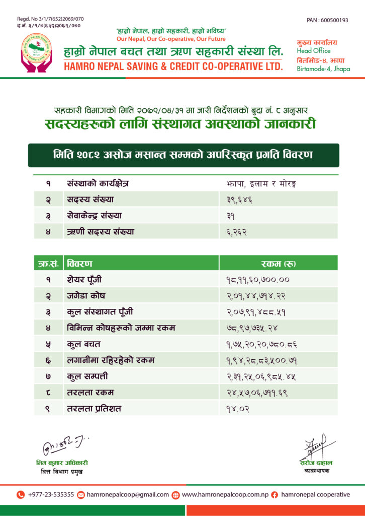 २०८२ असाेज मसान्त सम्मको वित्तीय विवरण (अपरिष्कृत)