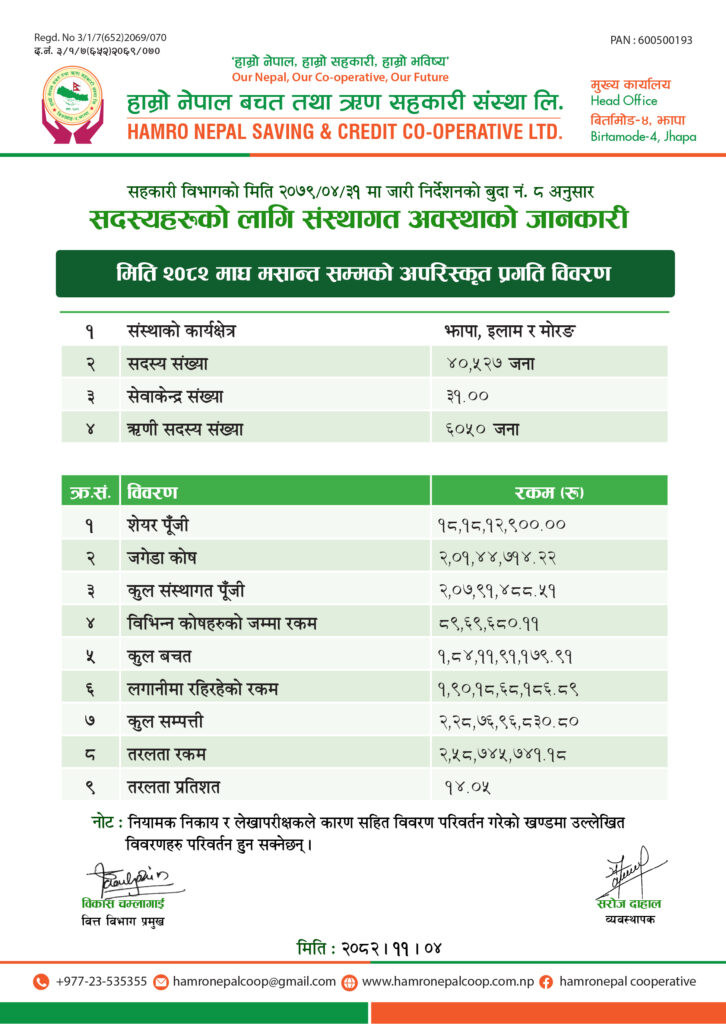 २०८२ माघ मसान्त सम्मको वित्तीय विवरण (अपरिष्कृत)